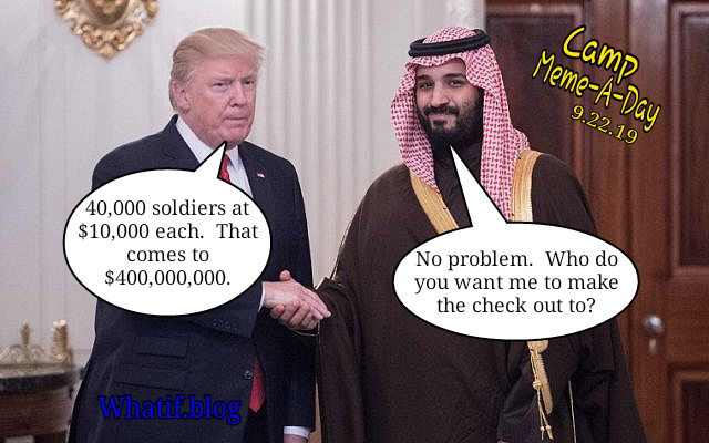 As I was saying…should you choose to attend the Trump-hosted Summit, all fees you will pay to stay in his resort, including room fees, food and beverage, entertainment, bug repellant, et al, will go directly into his pocket. Such action is specifically prohibited by the very Constitution he has sworn to uphold.
