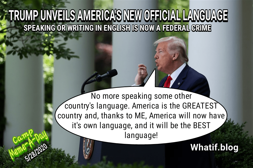 In his ongoing efforts to “Make America Great Again”, the President has just announced that America now has an official Language and the official name of the official language of the United States of America is “The American Language”, or “Americanese”.
